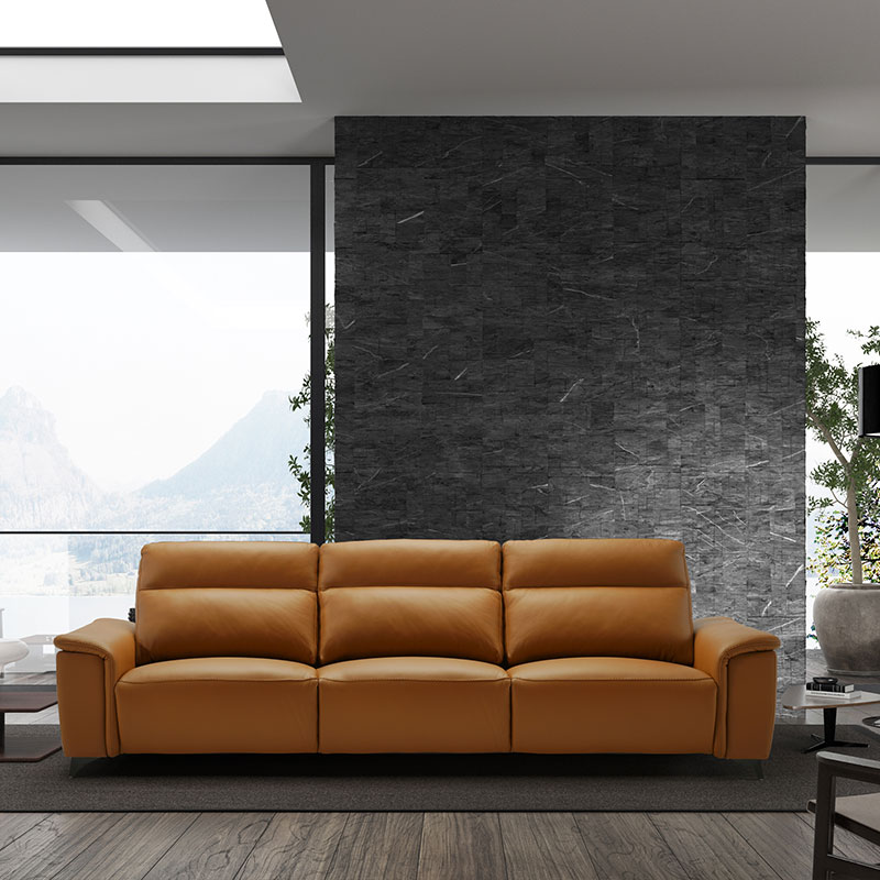 Sofá de piel con mecanismo relax eléctrico que levanta las piernas por encima de la horizontalidad.